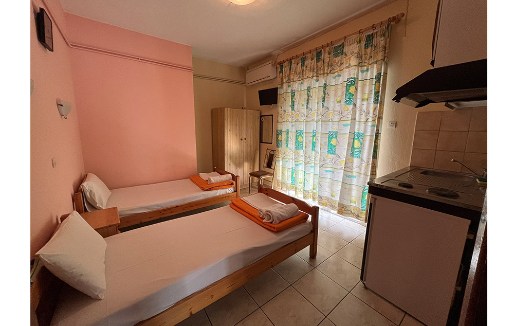 Vila Pelekanos Limenarija poseduje dvokrevetna I trokrevetna studija, koja su smeštena na prvom spratu. Studia poseduju čajnu kuhinju, kupatilo/wc, terasu, WiFi internet, TV i klima uređaj (doplata na licu mesta 7€ dnevno). U neposrednoj blizini vile se nalaze pekare i supermarket.