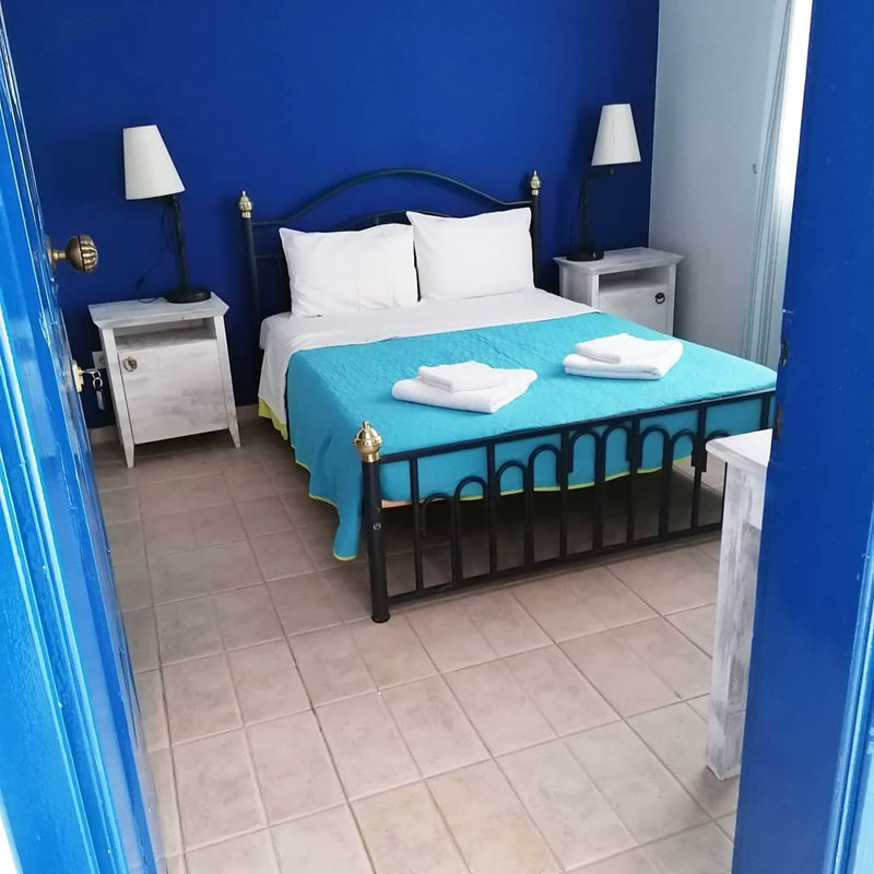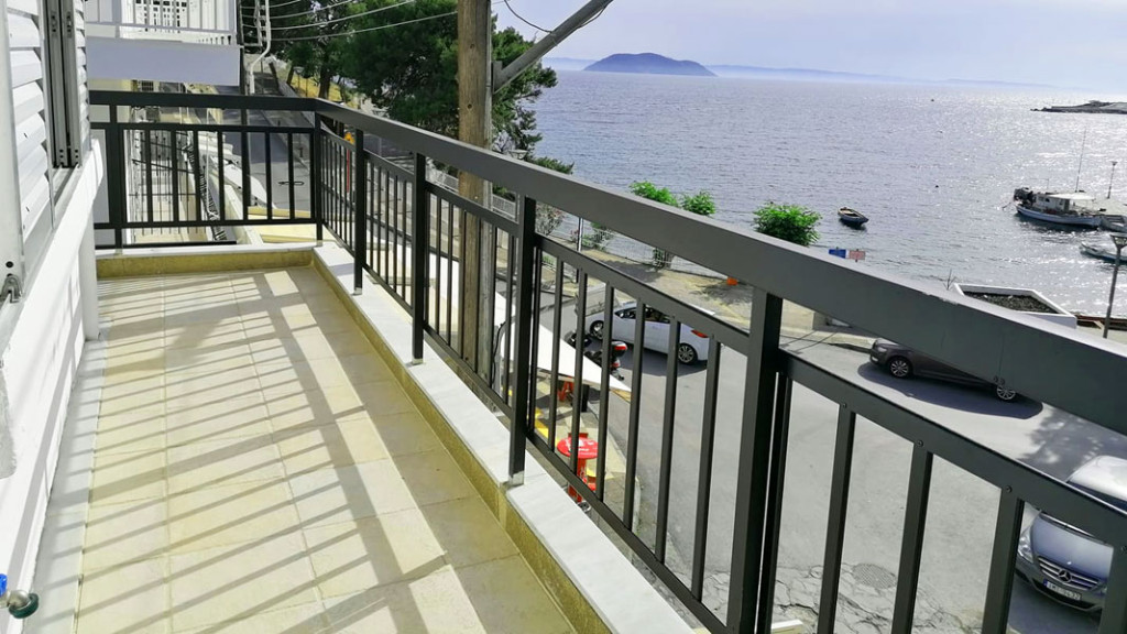 Vila Santala Neos Marmaras raspolaže dupleks apartmanima za 4 osobe, kao i apartman za 3 osobe. Sve smeštajne jedinice se nalaze na drugom spratu i opremljeni su rešo kuhinjom sa osnovnim posuđem, TV i klima uređajima (korišćenje BESPLATNO). Svi studiji imaju sopstvene terase, a većina ima pogled more. Posteljina se menja jedanput tokom boravka, nakon petog noćenja.