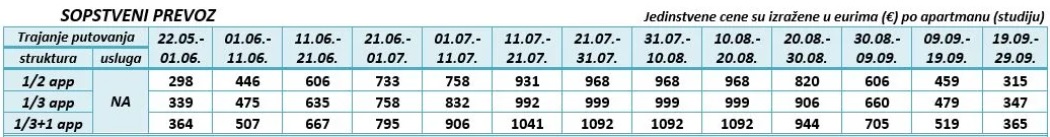 Jedinstvena cena aranžmana – sopstveni prevoz obuhvata: