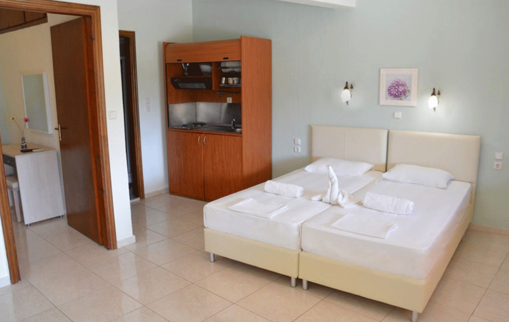 Vila Sultana Neos Marmaras poseduje dvokrevetna i trokrevetna studija, kao i četvorokrevetne i petokrevetne apartmane, smeštene u prizemlju, na prvom, drugom ili trećem spratu. Svaka smeštajna jedinica ima opremljen kuhinjski deo, kupatilo/wc, TV, WiFi internet i klima uređaj (korišćenje uključeno u cenu aranžmana). Svi studiji i apartmani imaju terasu ili prostor za sedenje sa garniturom, a većina ima pogled na more.